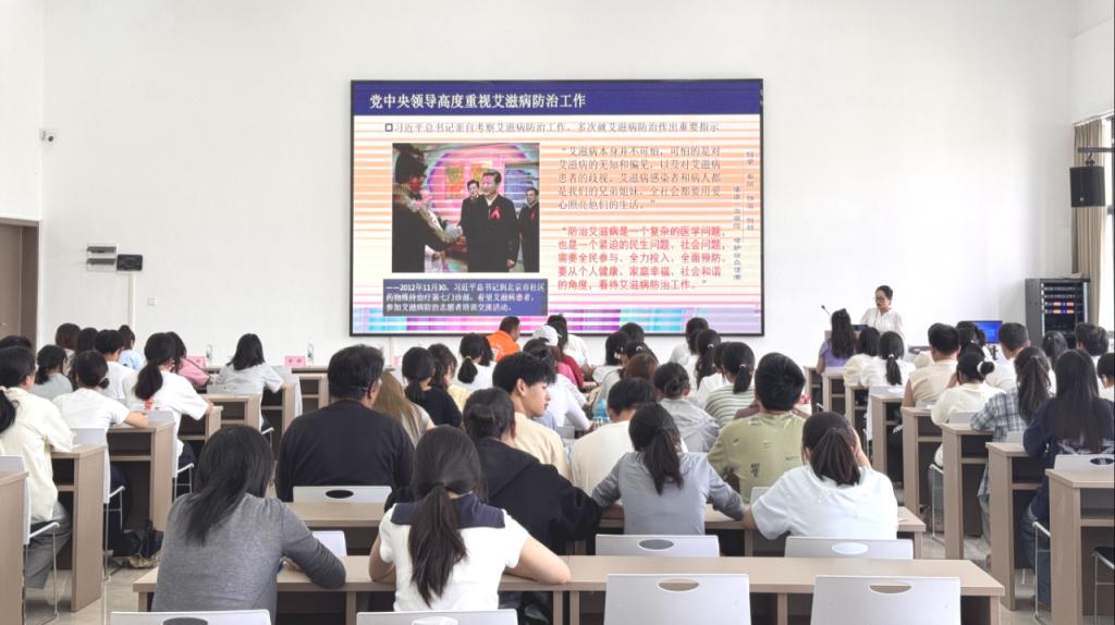佘敏、秦娟、黄超三位专家老师分别从艾滋病防治、宫颈癌筛查预防、禁毒等内容进行了专题授课,开展人口国情国策和青春健康知识宣传教育。三位老师系统阐述了艾滋病的医学定义、临床表现及流行特征,重点解读了血液传播、性传播、母婴传播三大传播途径及针对性预防措施,并详细介绍了艾滋病自愿咨询检测(VCT)及“四免一关怀”政策,强调该政策为感染者提供的医疗救助和生活保障措施。现场通过知识讲解与互动答疑相结合的方式,增强了参与者对防艾知识的理解与实际应用能力。