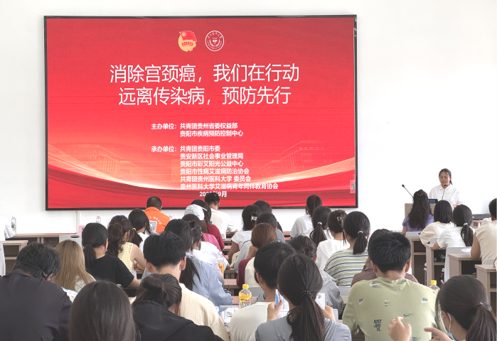 为提升我校青年法治、禁毒、防艾素养,助力健康贵州建设。9月19日,由省计生协、团省委权益部、贵阳市疾病预防控制中心主办,团市委、贵安新区社会事业管理部、贵阳市彩艾阳光公益中心、贵阳市性病艾滋病防治协会、校艾滋病青年同伴教育协会承办的“平安贵州·青春普法益起来”法治宣传流动课堂活动,在我校云漫湖校区学生活动中心202学生活动室开展。