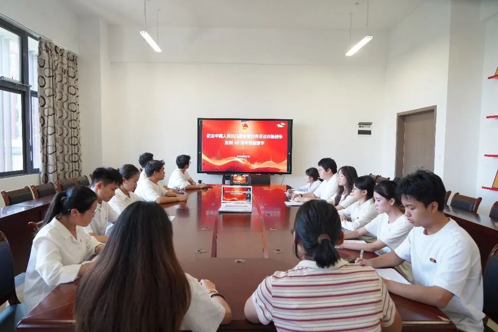 我校研究生会主席团成员廖秋月同学领学习近平总书记在纪念中国人民抗日战争暨世界反法西斯战争胜利80周年大会上的重要讲话精神。参会同学集中观看《书灯不灭,烛照复兴》专题视频,视频聚焦抗战时期高校西迁贵州的历史,通过影像、AI复原场景,再现浙大、大夏大学等校师生在黔坚守教学科研、与贵州人民共克时艰的事迹,让同学们深刻感悟战火中教育薪火不灭的精神,明晰铭记抗战历史、传承民族精神的意义。