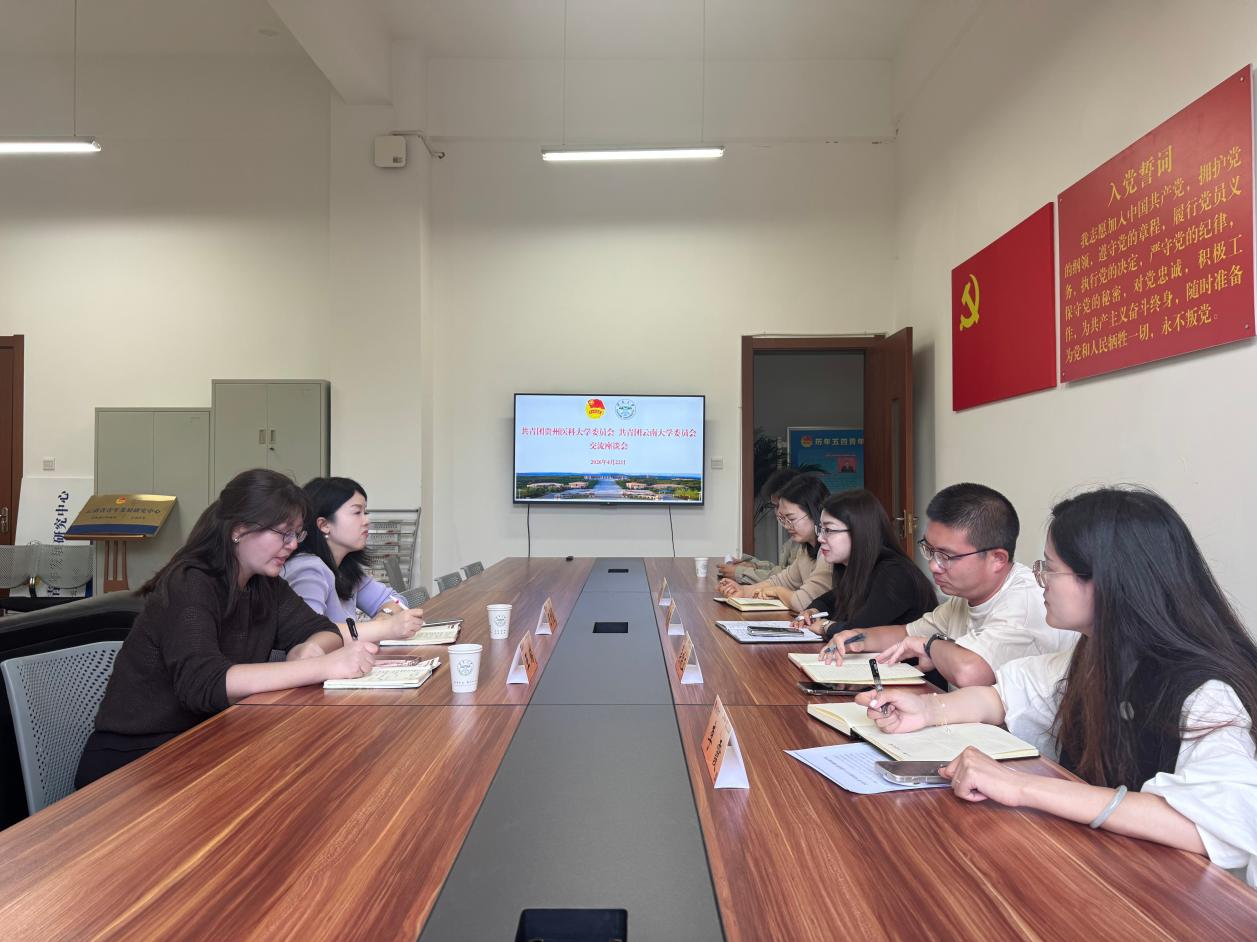 在云南大学,双方团委围绕团员思想引领、共青团在思政课建设中的作用发挥等工作展开座谈交流,就如何整合校园特色资源、打造贴近青年的活动品牌进行了深入探讨,并实地走访玫瑰园,详细了解云南大学共青团依托专业特色开展创业工作的创新思路,认真学习云南大学在创业实践劳动教育等方面的先进经验。