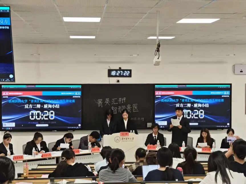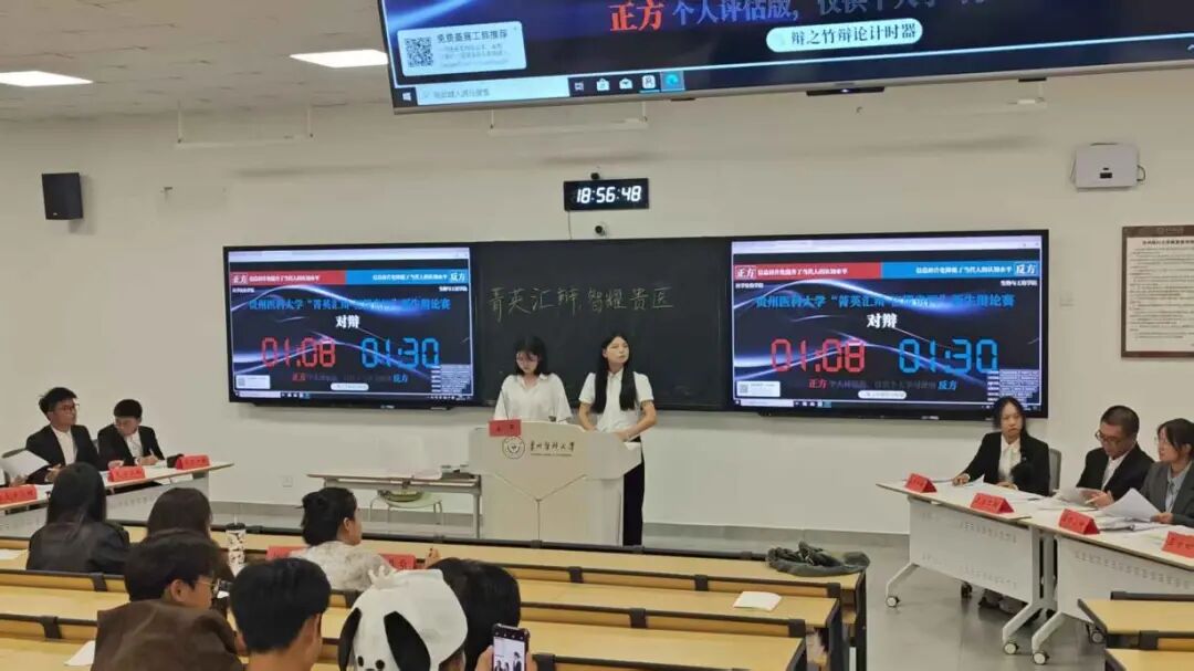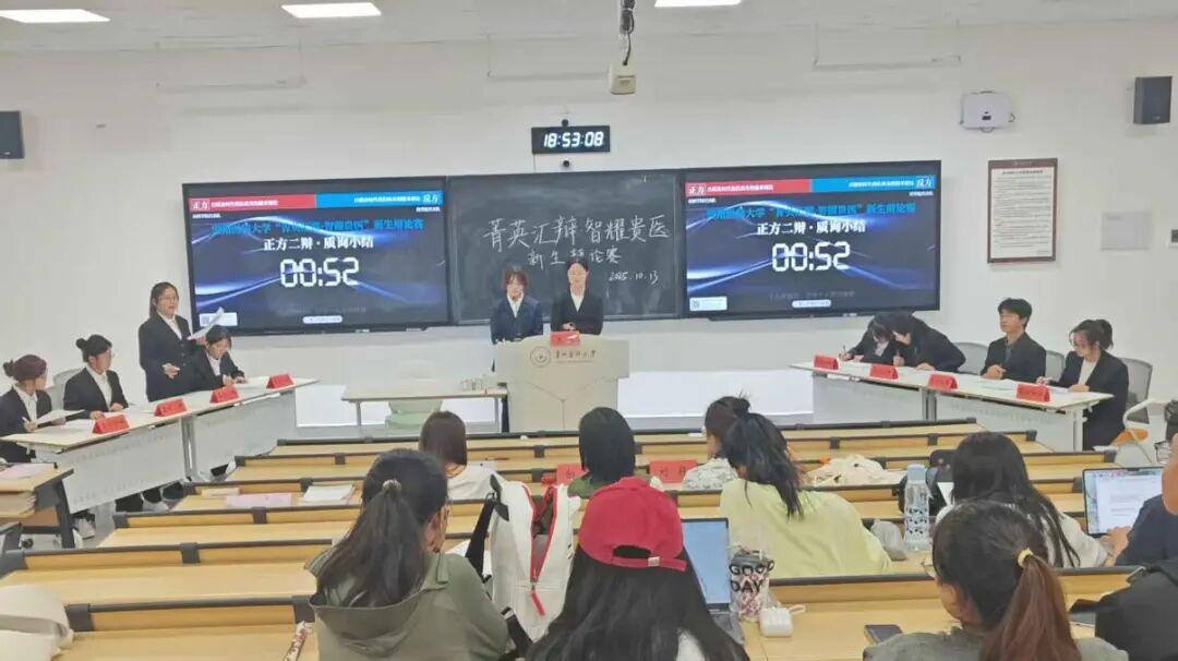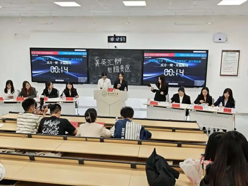 10月13日、14日晚,我校迎来了一场智慧与口才的盛宴!2025级新生辩论赛初赛在“临床组团”教学楼激烈上演。来自各学院的学子们齐聚一堂,围绕一系列贴近当代青年生活的热点辩题,展开了精彩绝伦的思想交锋,展现了贵医青年的风采。