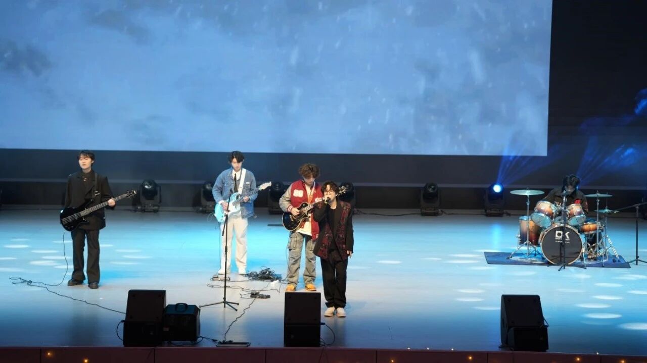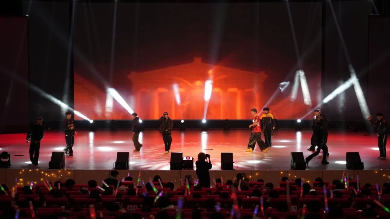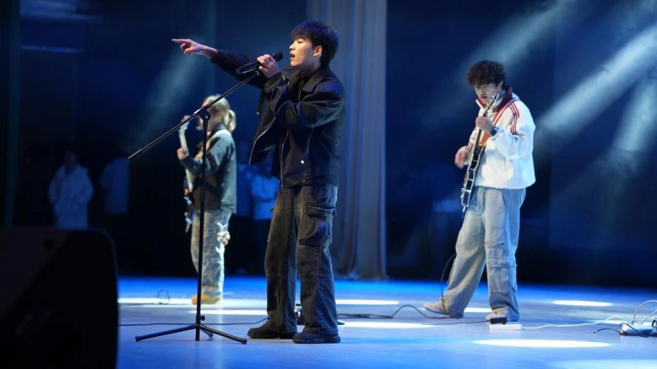 GYD舞蹈部落带来街舞《shooting stars》,伴随着节奏鲜明的旋律,舞者们以充满力量感的舞步演绎,展现出如流星般耀眼的舞台魅力。赤道的冬天乐队不仅为大家带来两首经典乐曲《违背的青春》、《艾蜜莉》,还有一首原创歌曲《雾雨》,音符间流淌着少年意气;嘻哈社则以说唱《千疮百孔》、《仁义茶楼》展现锋芒,让韵律与词句碰撞出思想的火花,将晚会推向高潮,燃“炸”全场。