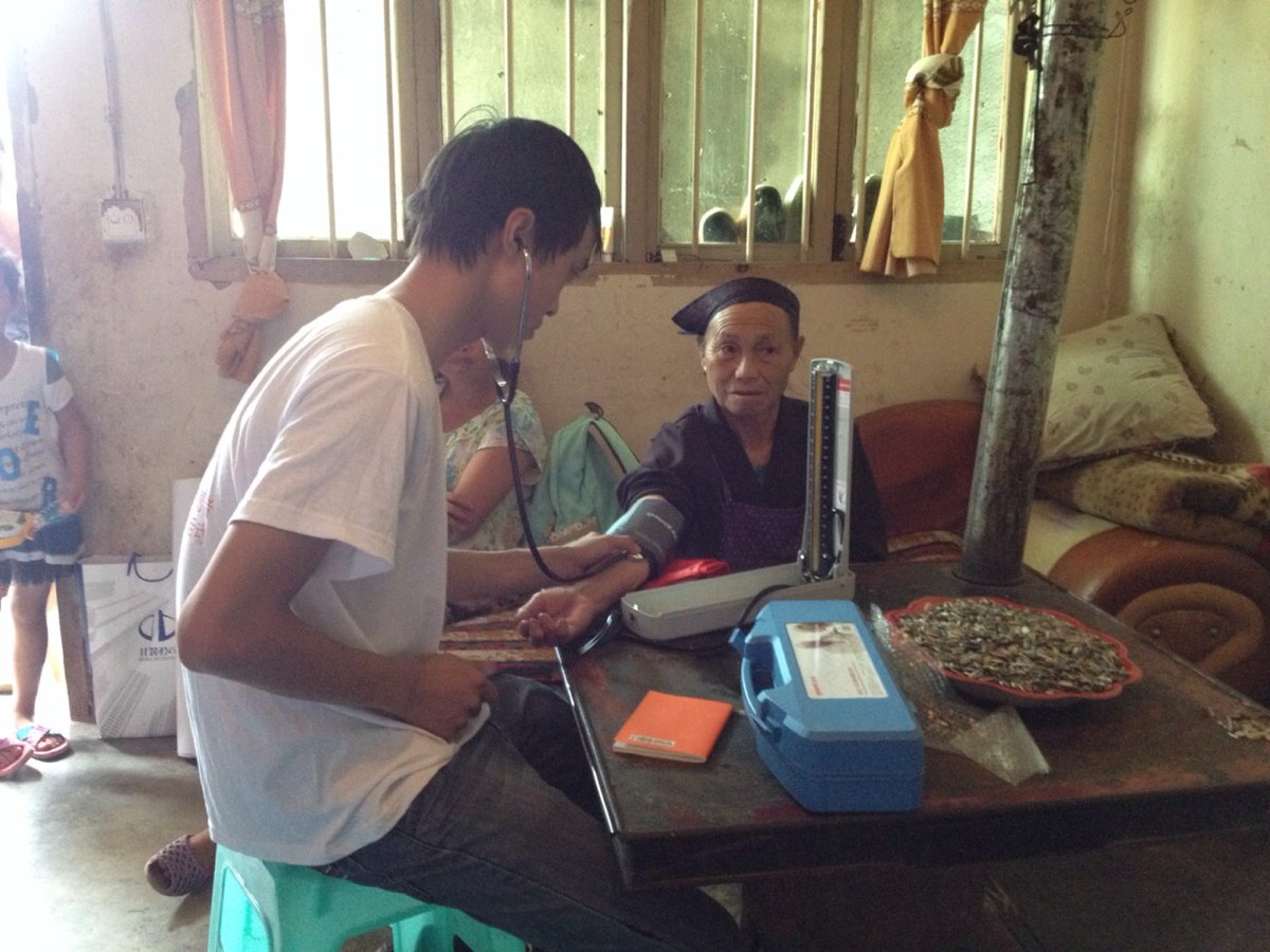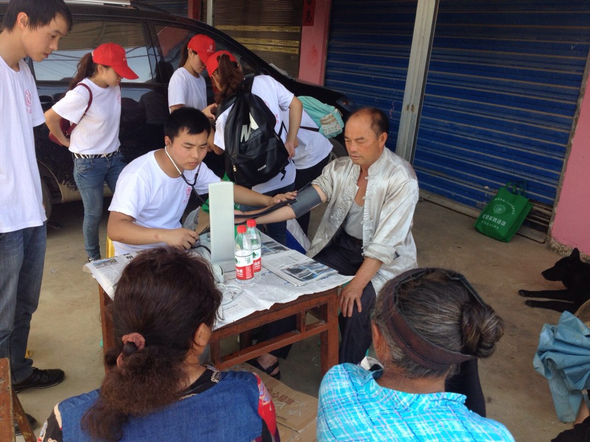 下午,志愿者们为当地老人测量了血压,发放日常药品。志愿者们的认真、仔细、贴心的服务获得了当地村民的一致好评。最后,队员们还进行了急救技能的展示,预防知识海报张贴与讲解,在社会实践队员们生动的展示和仔细的讲解中,村民们对如何应对突发病情、如何预防疾病等问题有了更加全面的认识。