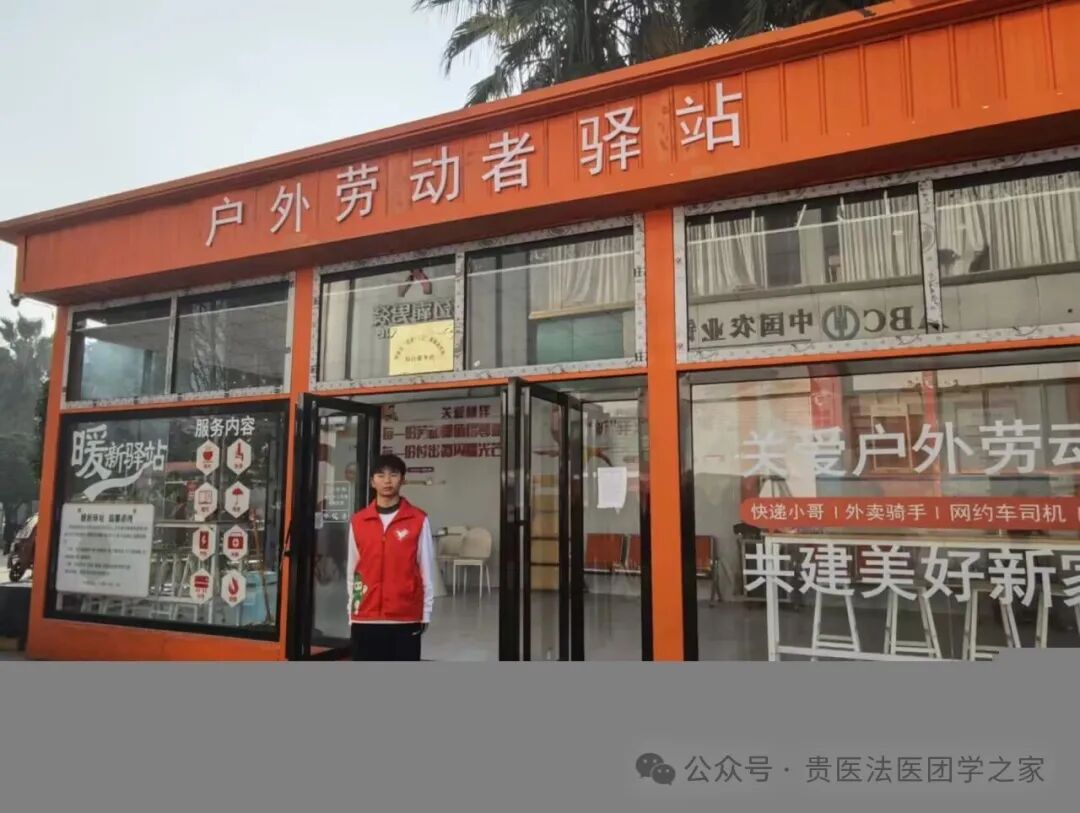 实践内容:每日按时到岗,提前准备好热水、清洁桌椅、整理便民药箱,为外卖员、环卫工人等户外工作者提供歇脚与便民服务。