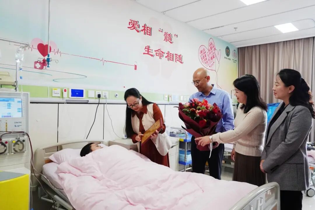 贵州医科大学党委副书记于浩、省红十字会副会长(挂职)邓仁丽一行专程前往贵州省人民医院(观山湖院区)对邹兰进行慰问,校团委书记王妤煜、省红十字会造血干细胞管理中心副主任杨梅、药学院党委副书记包欢欢等人陪同,面对前来慰问的领导和老师,她笑着分享近况:“身体没有别的不适感,请老师们放心”。 这份从容,一如她在学校时的模样——作为班级生活委员,她总是尽心尽力为同学们服务,也正因这份责任心,她曾获评“优秀学生干部”荣誉称号;作为怀揣梦想的学子,她已成功拿到2026年贵州医科大学的推免资格并收到了沈阳药科大学的录取通知。“不管是做学生干部、准备读研,还是这次捐献干细胞,我只是想做自己觉得有意义的事。” 邹兰的话语简单却有力量。在她看来,这是一场跨越国界的生命馈赠,不是一份“功绩”,而是一次“幸运”——幸运自己有机会用小小的善举,为陌生的生命点亮微光。从 2023 年一次不经意的公益选择,到 2025 年的一场生命接力,邹兰用实际行动诠释了“奉献”二字的真正力量,这场跨国的生命接力也将成为贵州医科大学育人路上的点滴成效,激励更多贵医学子心怀善意、乐于助人。