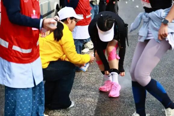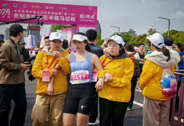 “小青卫”志愿者成为赛道守护者,选手们怀揣着饱满的热情跨过起点线,志愿者的目光紧紧追随着每一位奔跑者。有人步伐踉跄时,志愿者立刻上前搀扶,协助调整呼吸节奏;有人出现轻微抽筋、擦伤,志愿者熟练地进行拉伸、消毒处理,用专业知识缓解不适;遇到体力透支的选手,志愿者及时递上补给,耐心安抚情绪,帮助他们重拾信心。