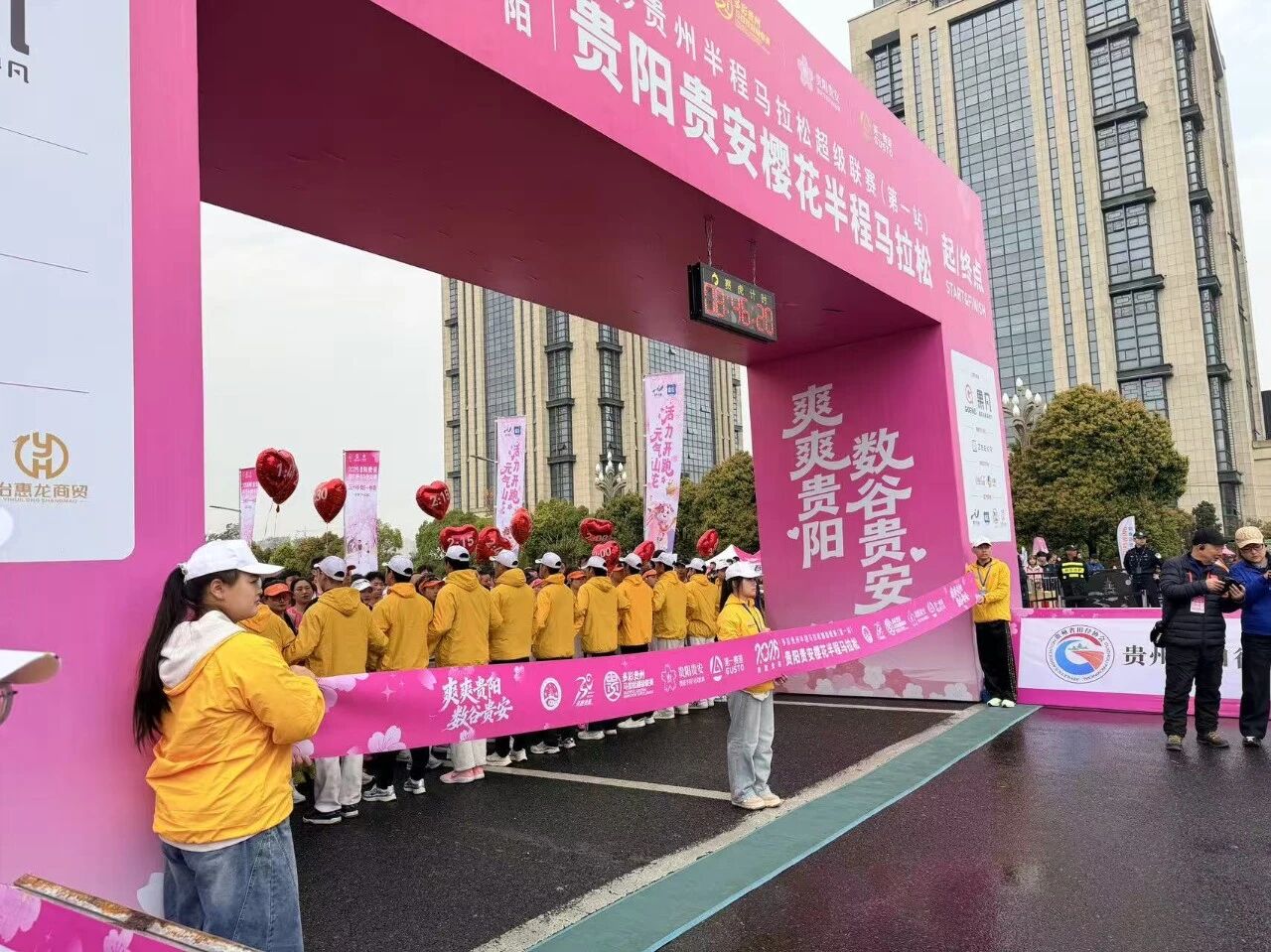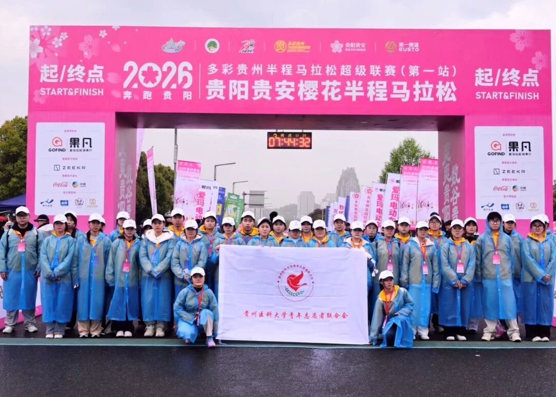 3月29日,2026多彩贵州半程马拉松超级联赛(第一站)暨贵阳贵安樱花半程马拉松在贵安新区鸣枪开跑。6000名跑者踏樱竞速,在春日赛道上挥洒汗水,我校选派272名“小青卫”志愿者化身“移动安全屏障”,以专业的急救技能、暖心的志愿服务,全程守护每一位参赛者的健康与安全。